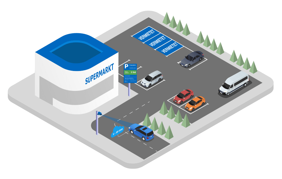 Signs inform customers of the rules. Unobtrusively installed cameras automatically recognise the number plates and record the parking time.
